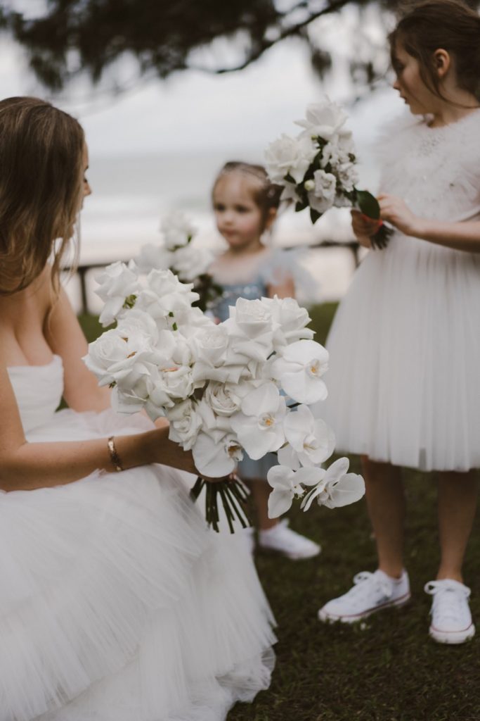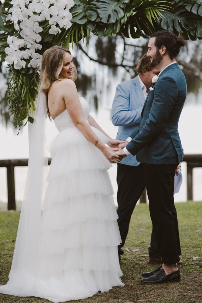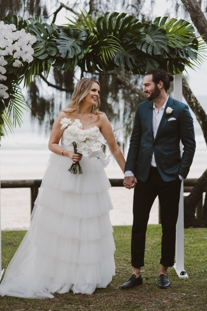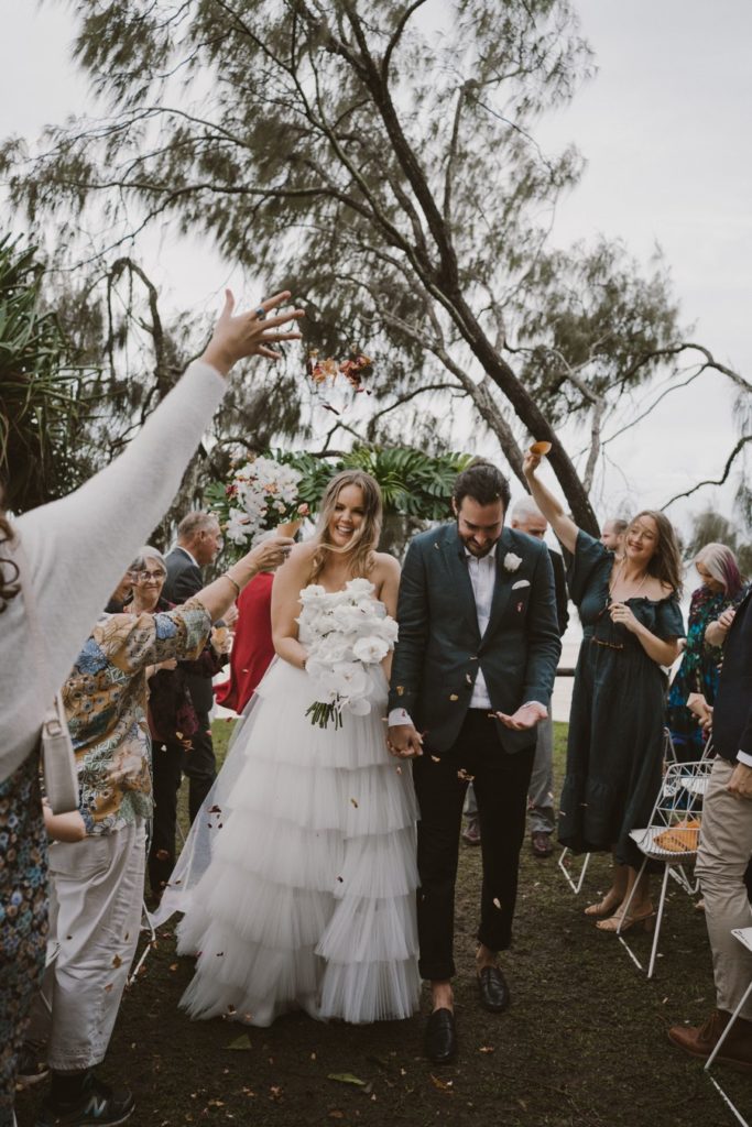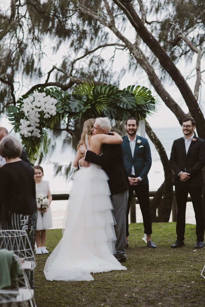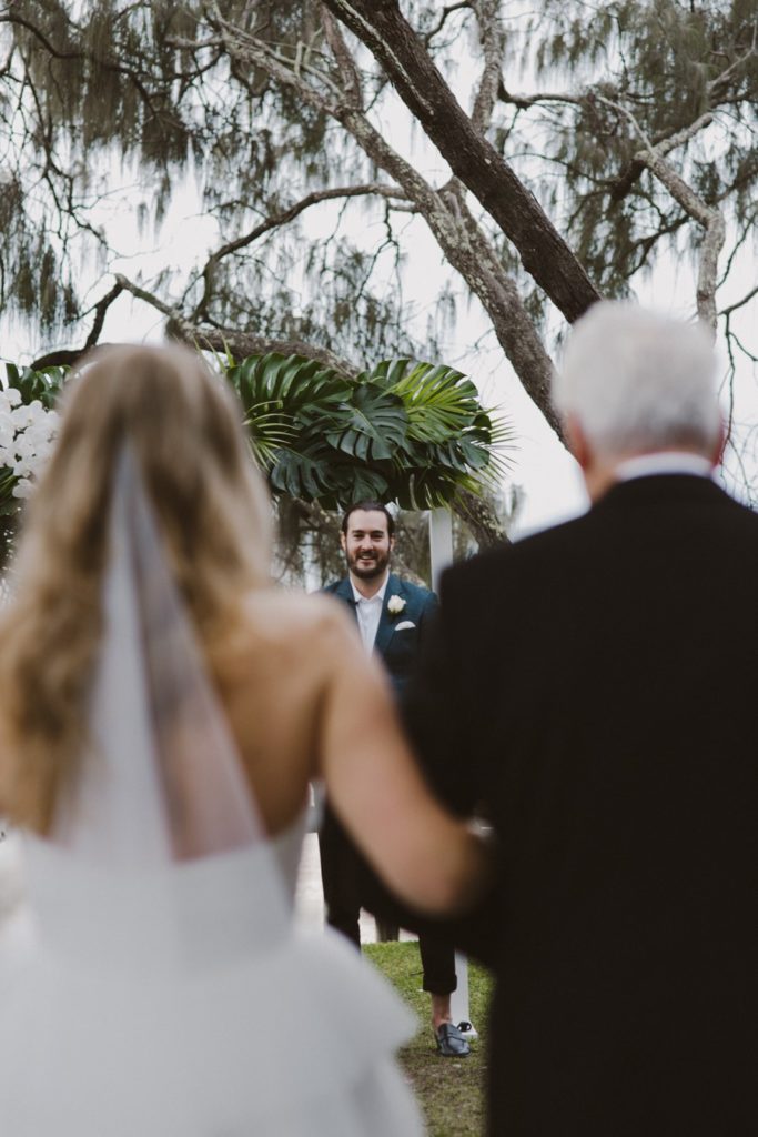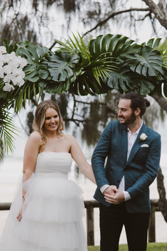 April and Robbie’s Noosa wedding was all about celebrating with family and friends, they wanted their day to feel relaxed, carefree and easy. Rain was looming all morning but April held strong, she would be getting married in the grove with ocean views even if it was under umbrellas. Staying optimistic paid off, the afternoon was perfect with sunshine and a stunning sunset to finish the day.