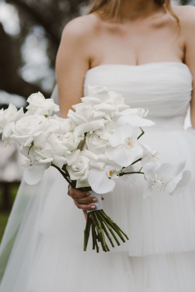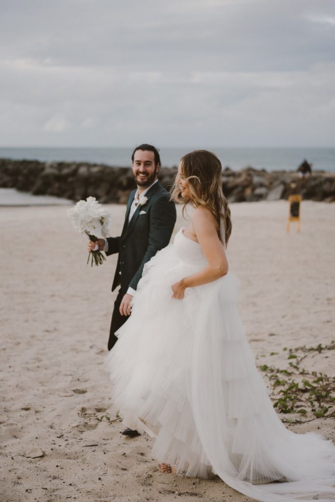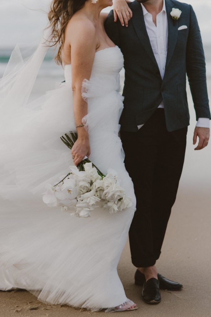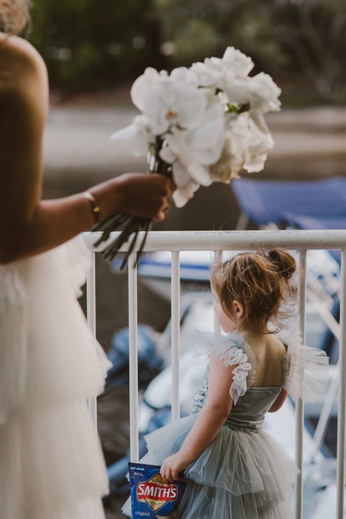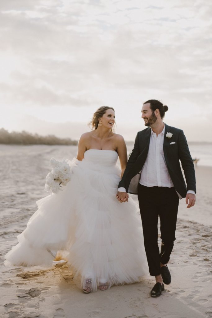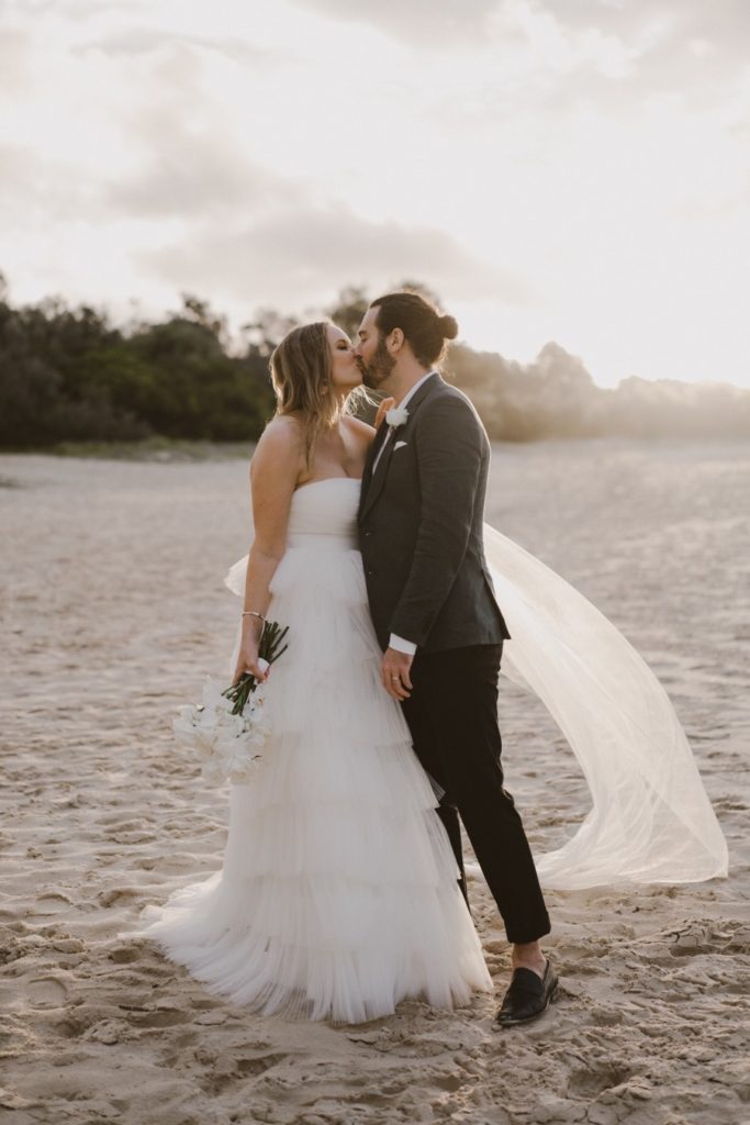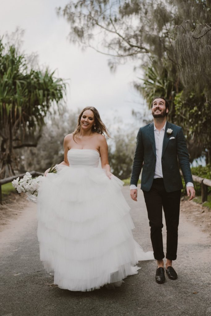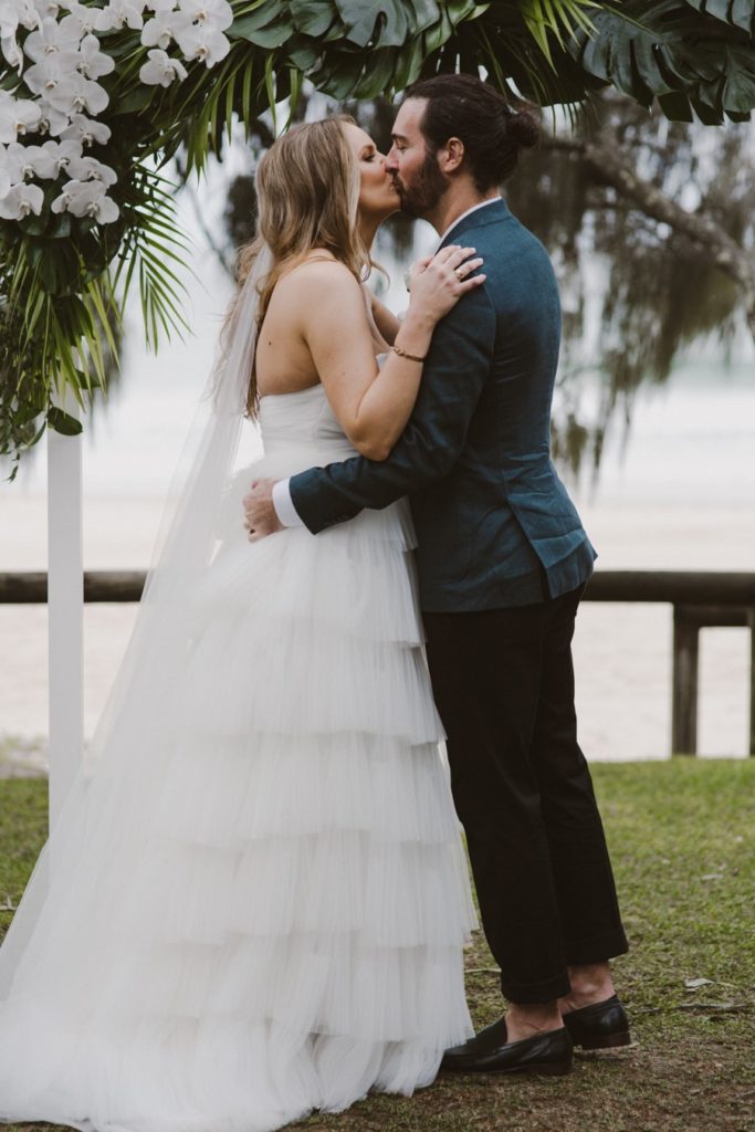 April and Robbie’s Noosa wedding was all about celebrating with family and friends, they wanted their day to feel relaxed, carefree and easy. Rain was looming all morning but April held strong, she would be getting married in the grove with ocean views even if it was under umbrellas. Staying optimistic paid off, the afternoon was perfect with sunshine and a stunning sunset to finish the day.
