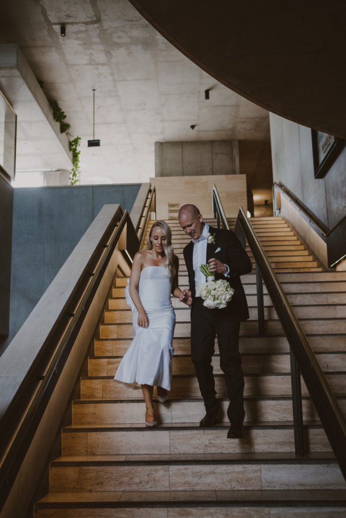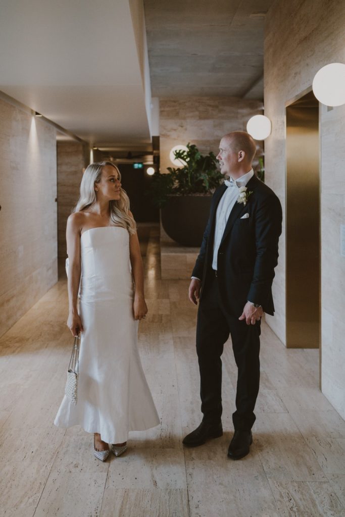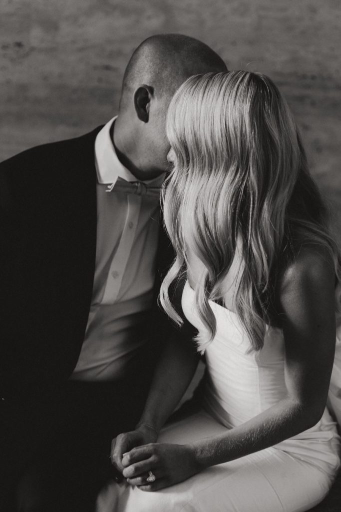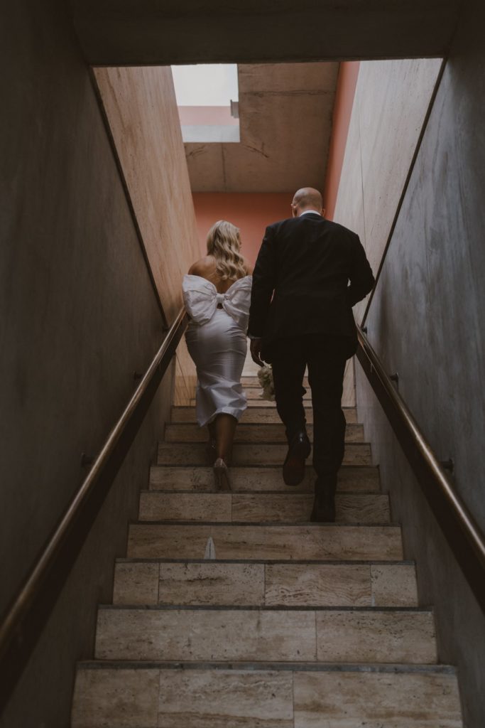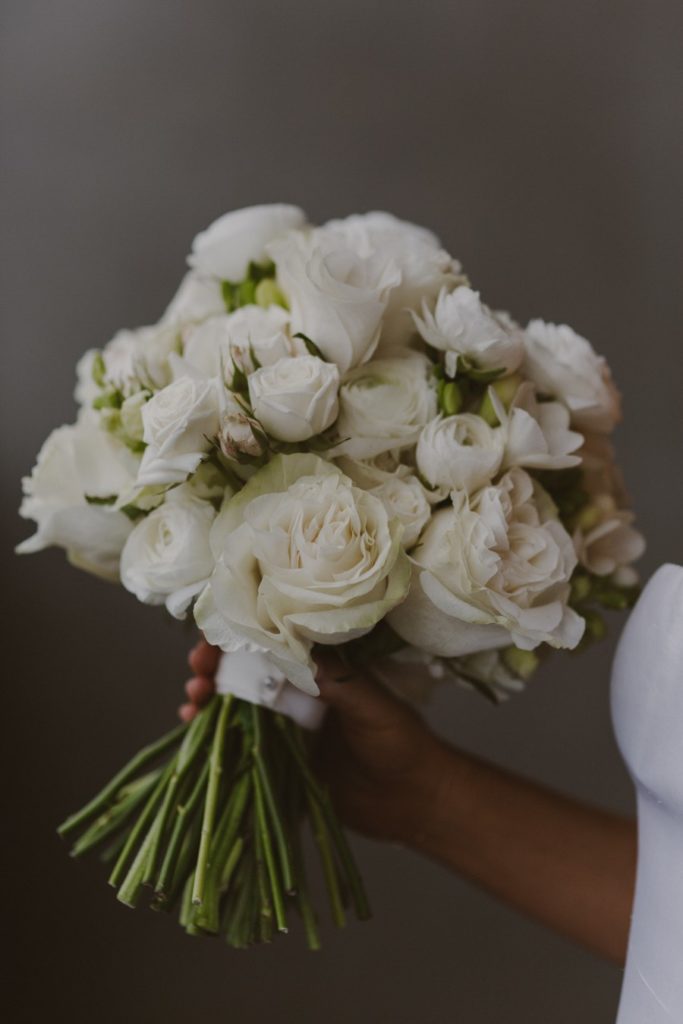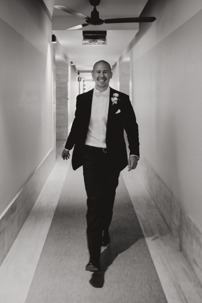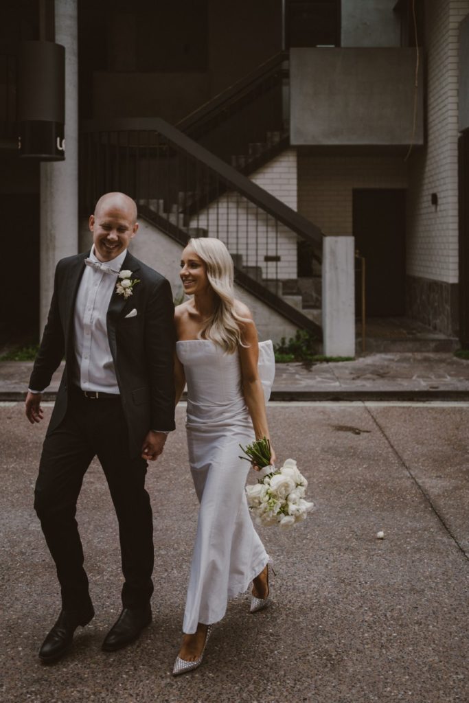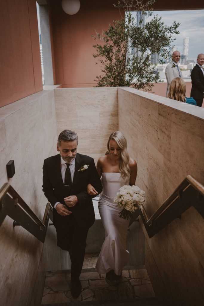 Pat & Juliet’s Calile Hotel intimate wedding was originally going to look vastly different. They had planned a big wedding at Maleny Manor with a lot of family and friends flying in from Tasmania. As we all know, 2020 had other plans, so they pivoted and what took place was an intimate, just as perfect day at The Calile Hotel with just their closest family. Some of which had to brave quarantine on arrival back to Tasmania. Juliet bought her gorgeous bow detailed gown pre loved, this stunner of a dress by Rasario x My Theresa was originally worn by model Olive Cooke on her wedding day. I would have sworn it was made for Juliet!