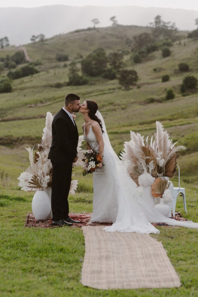 Jessica and Joshua were married at Conondale Station with views overlooking rolling hills and farms. They chose to keep their day intimate and peaceful, choosing to elope. Pash & Dash took care of all the planning. Keeping stress to a minimum with Valentina from Sunshine Brides coming in to do Jess’s hair and makeup.