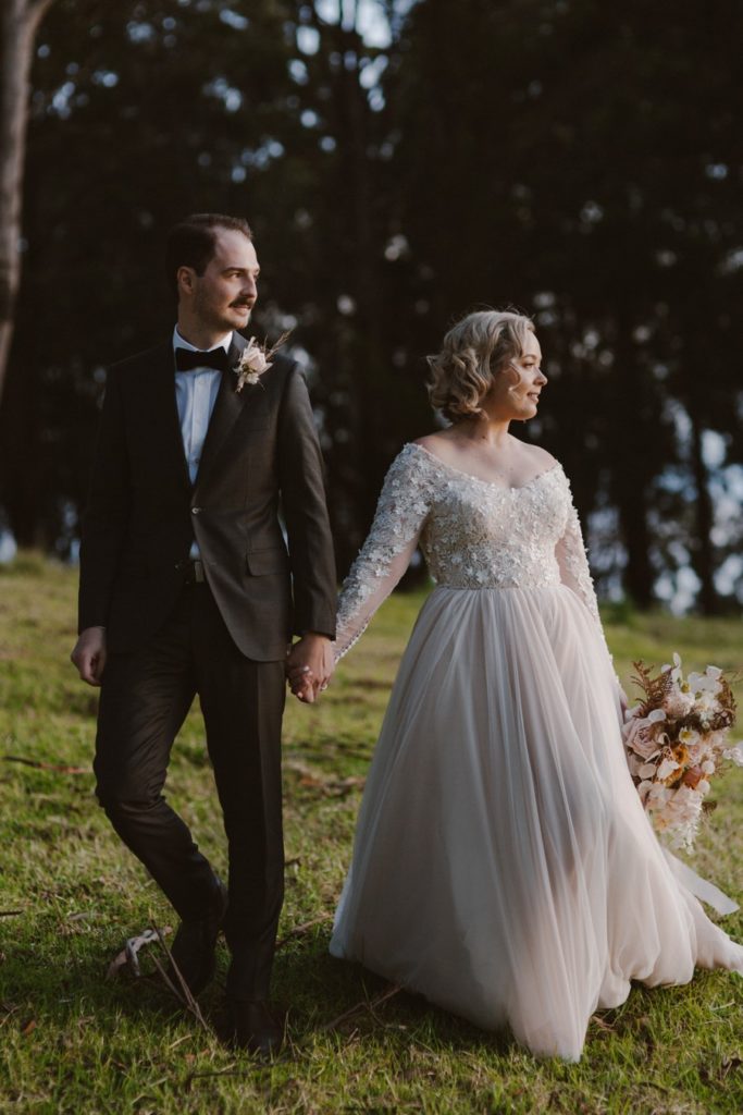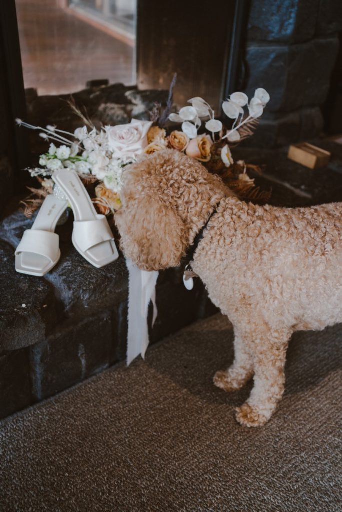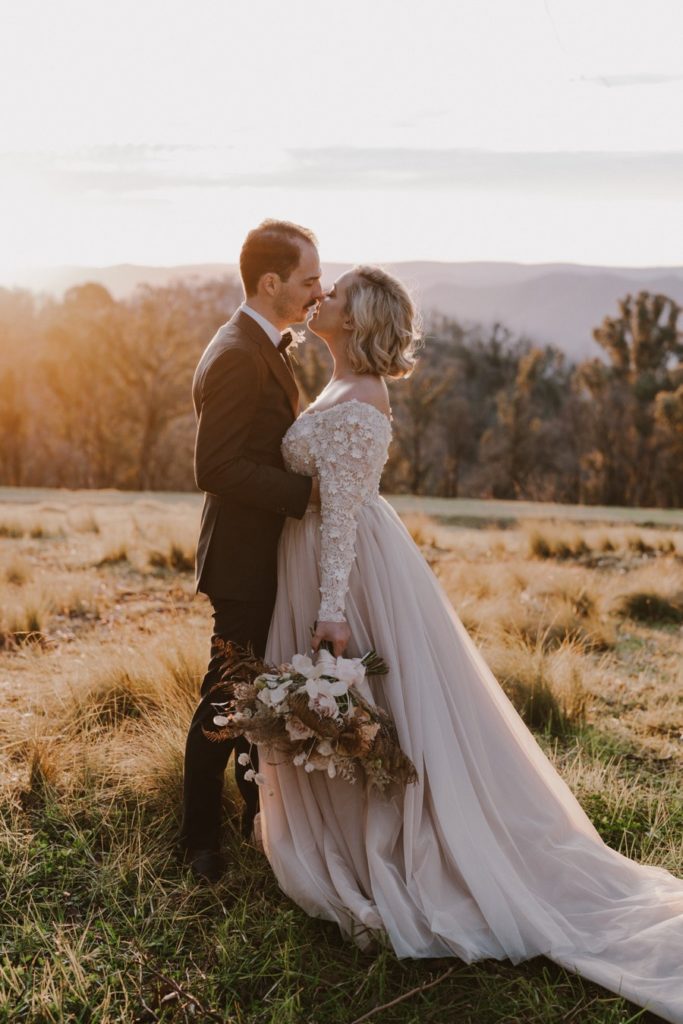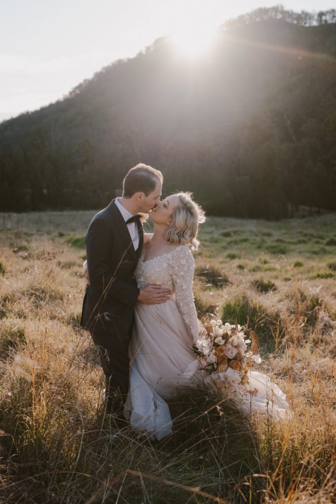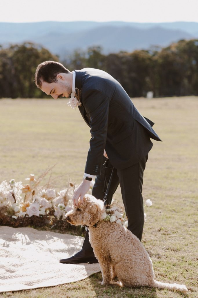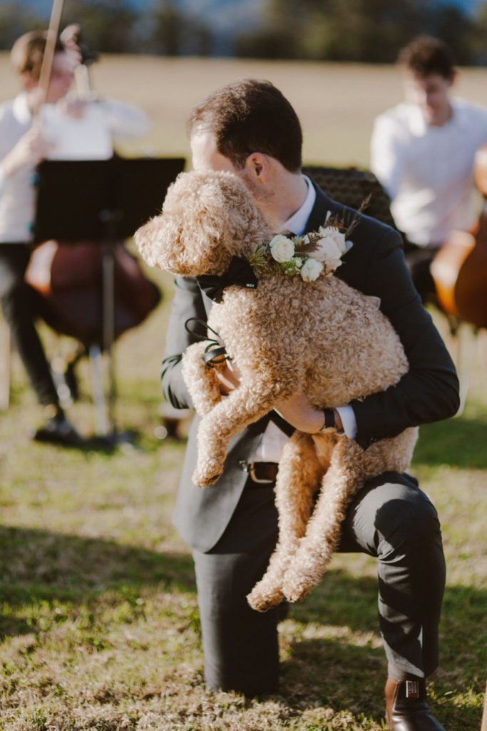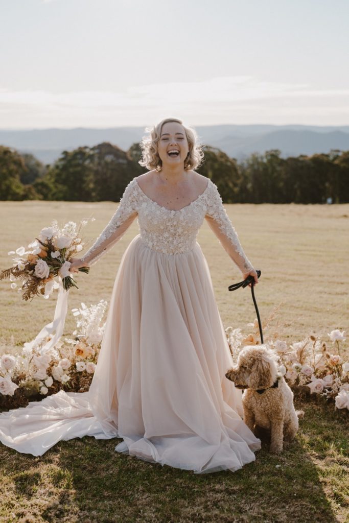 This was a fairy-tale of a wedding day with the most stunning meadow inspired florals on a perfect winter day. Kate & Jacob chose Spicers Peak Lodge for their intimate wedding, inviting just their closest friends and family. It was mid 2021 craziness and their wedding just slipped between two sets of stay at home snap lock downs. Kate was stunning in a tule and lace Luce Sposa gown. The cherry on the cake was their Labradoodle Moe, who’s attendance was a surprise gift from Jacob to Kate as a wedding present.