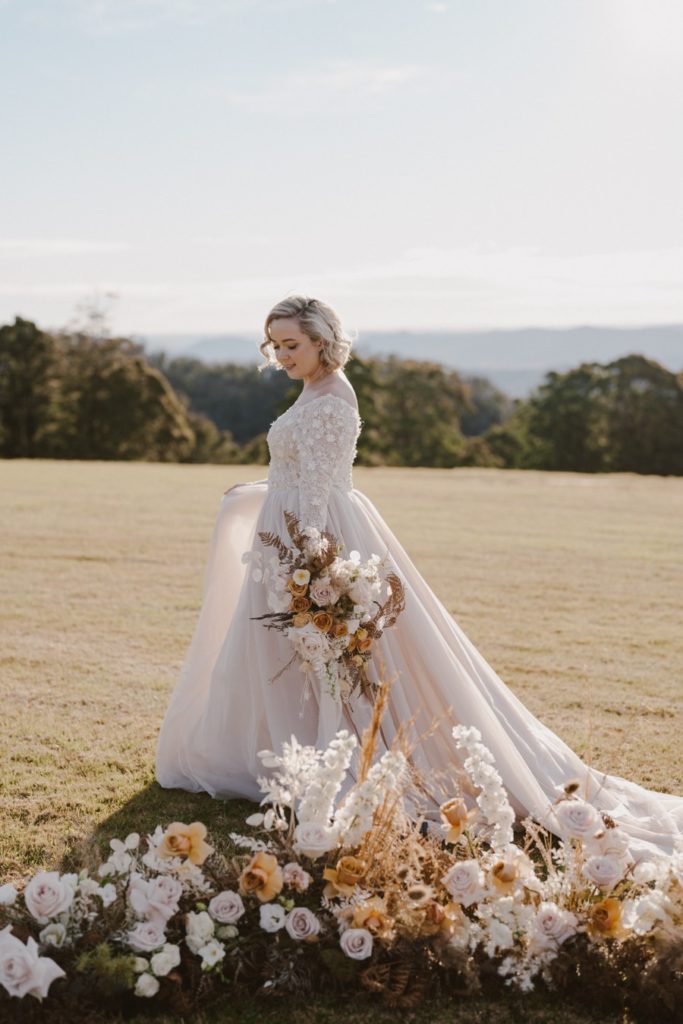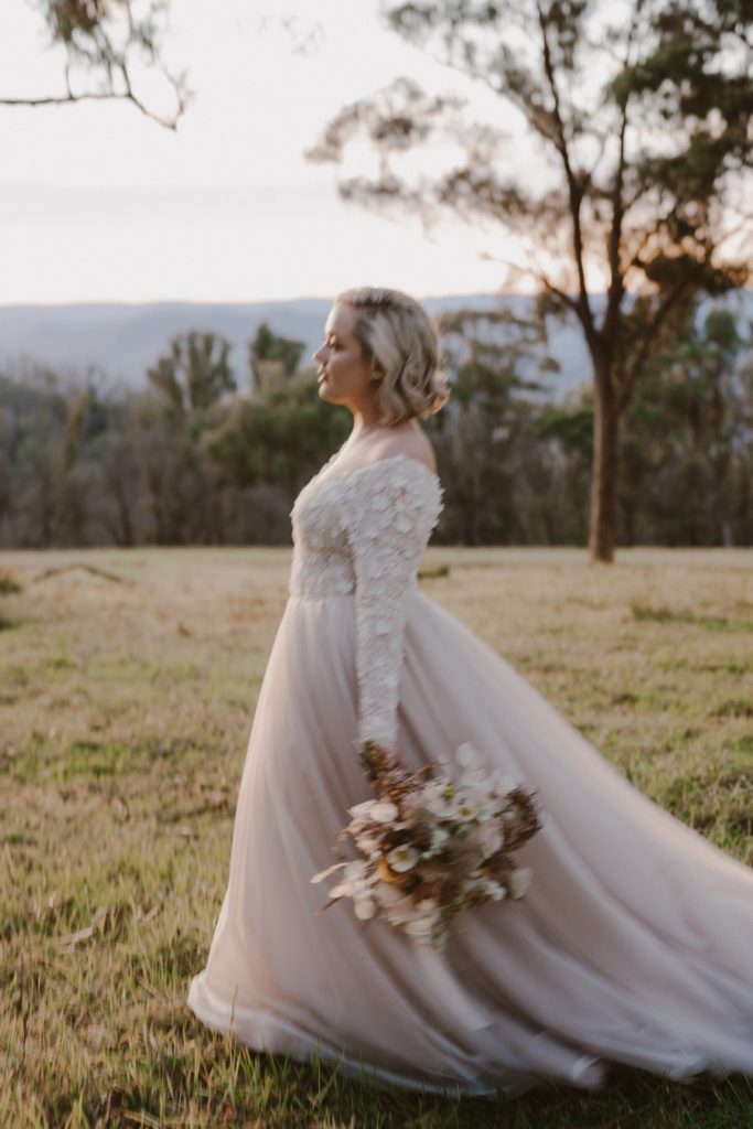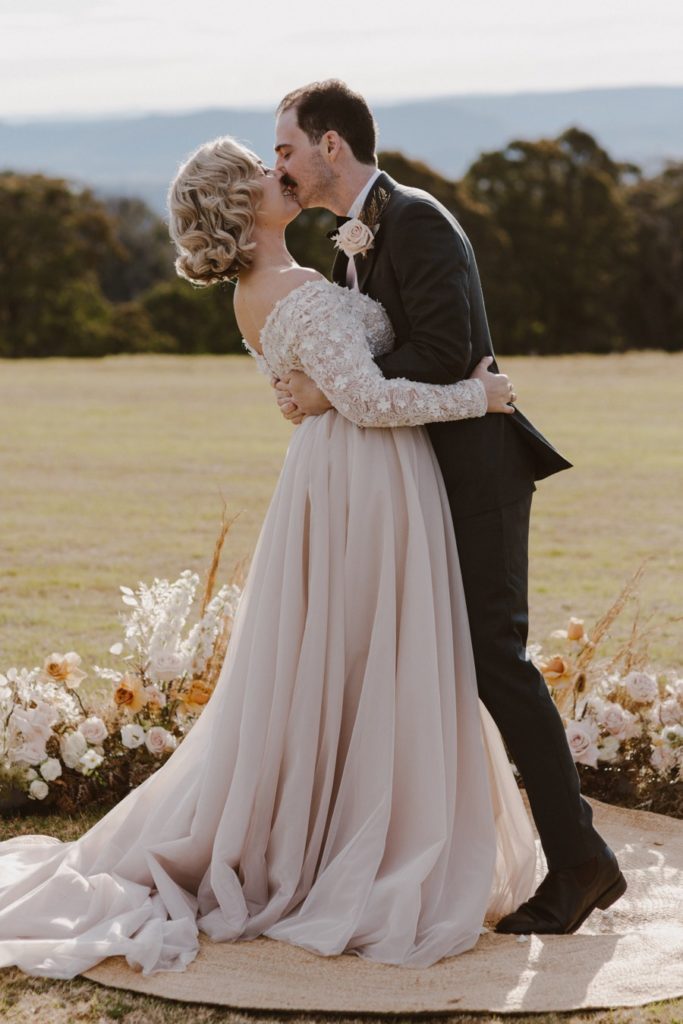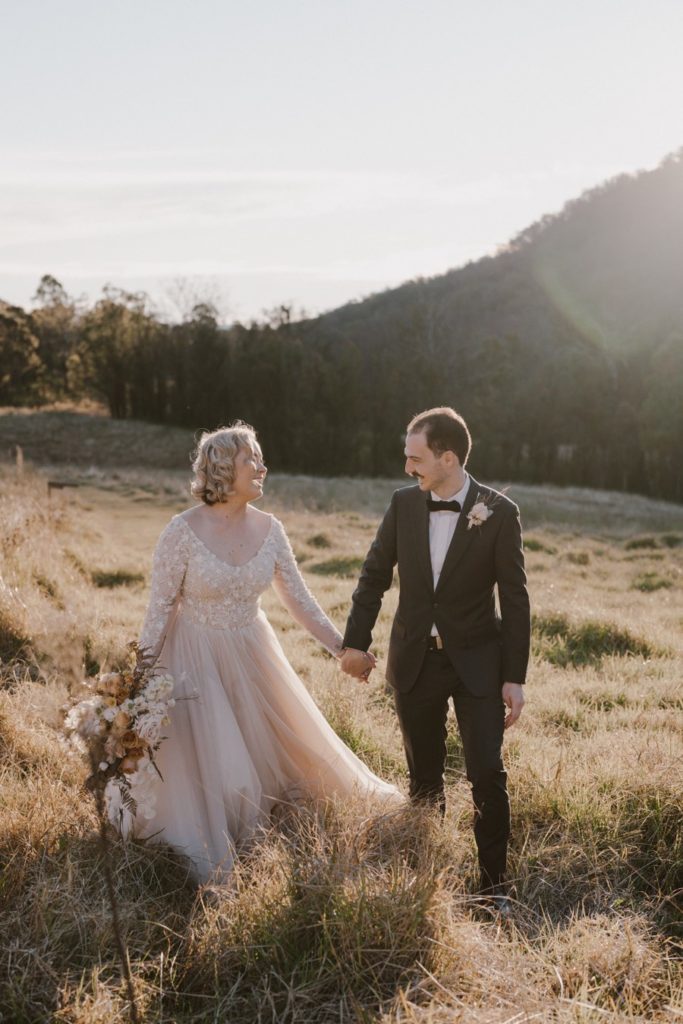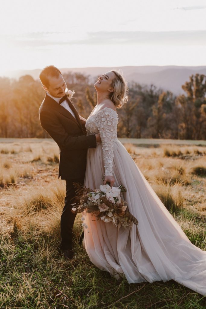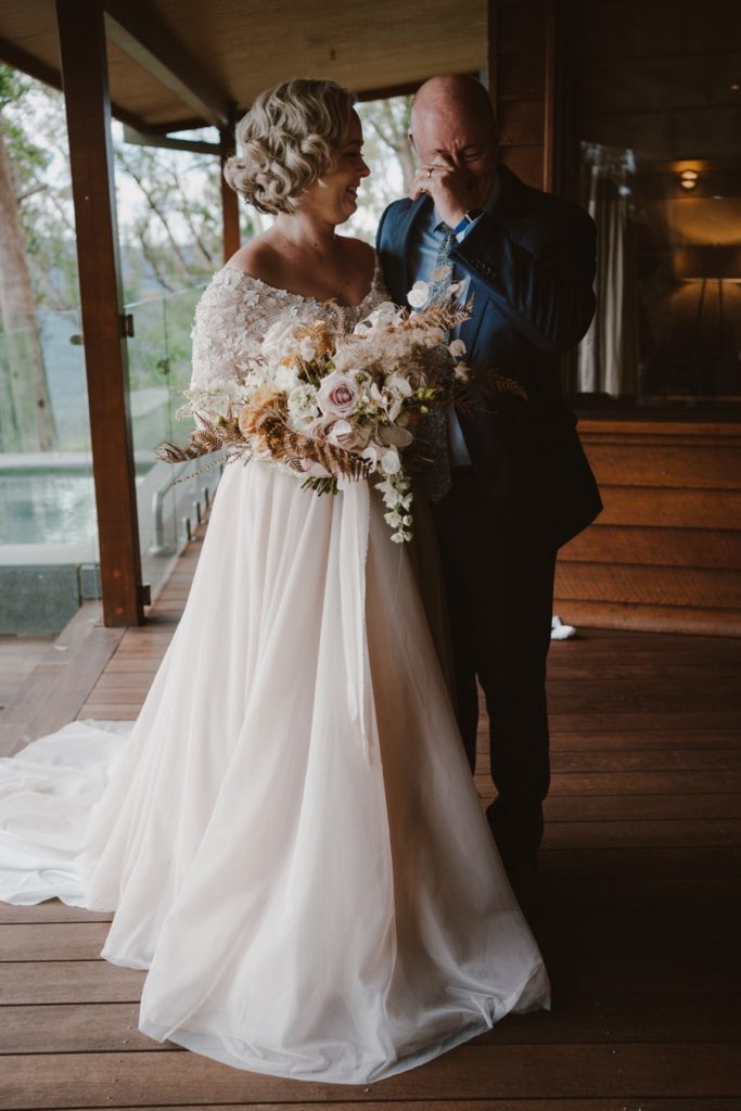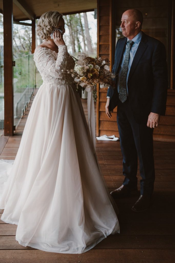 This was a fairy-tale of a wedding day with the most stunning meadow inspired florals on a perfect winter day. Kate & Jacob chose Spicers Peak Lodge for their intimate wedding, inviting just their closest friends and family. It was mid 2021 craziness and their wedding just slipped between two sets of stay at home snap lock downs. Kate was stunning in a tule and lace Luce Sposa gown. The cherry on the cake was their Labradoodle Moe, who’s attendance was a surprise gift from Jacob to Kate as a wedding present.