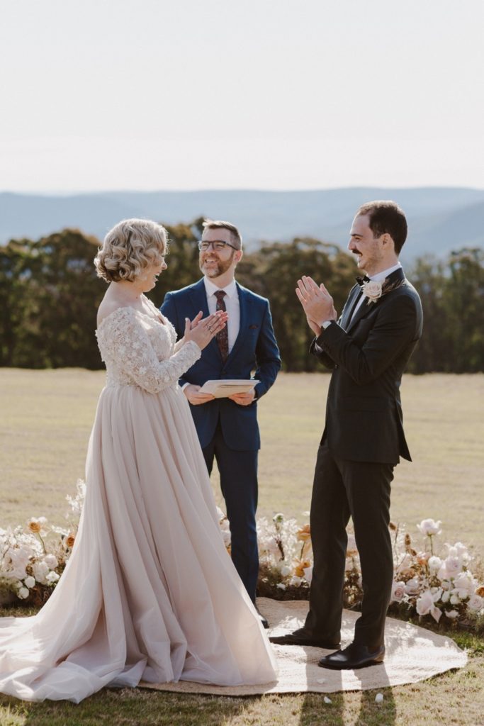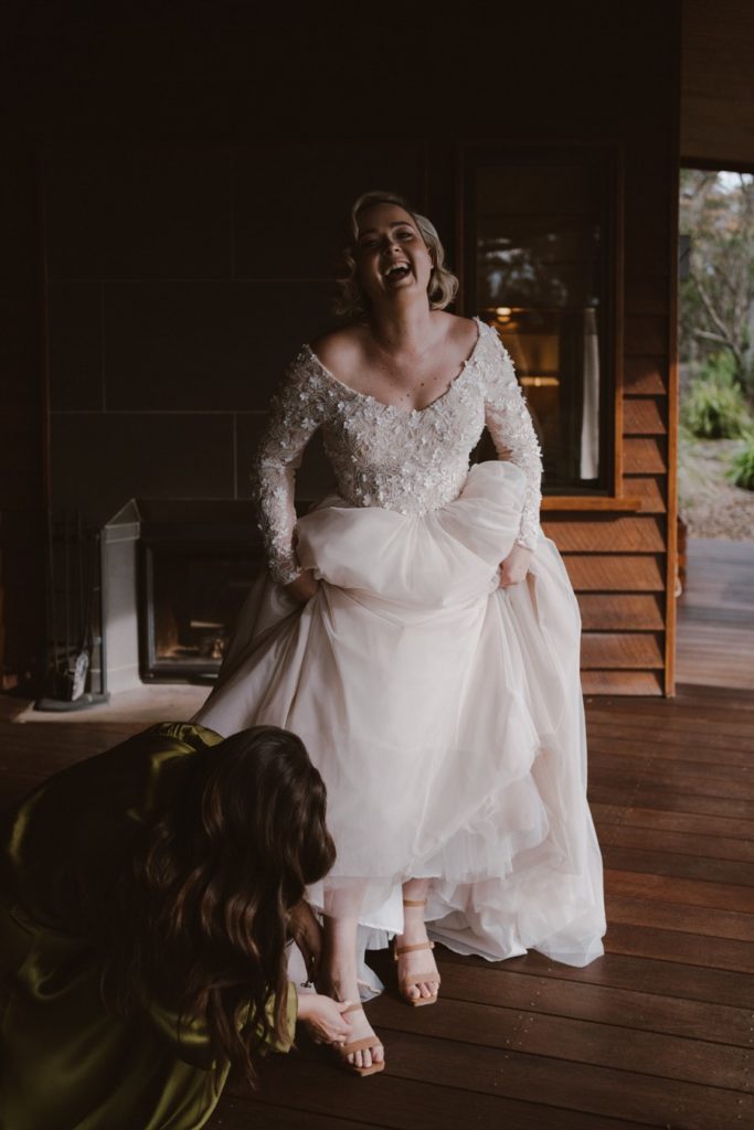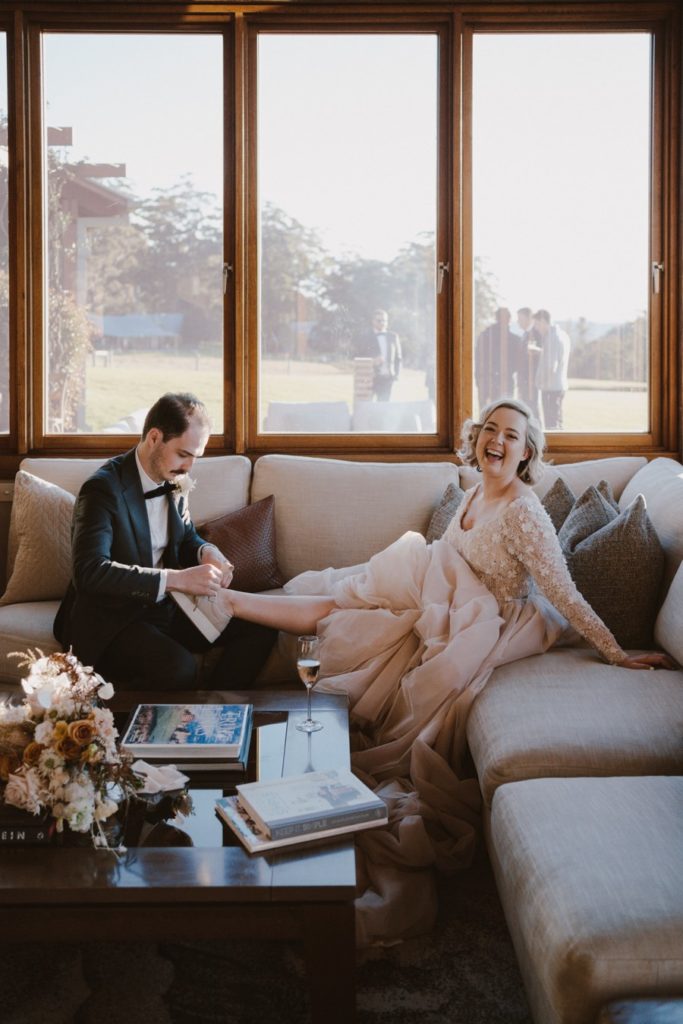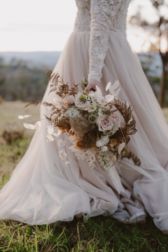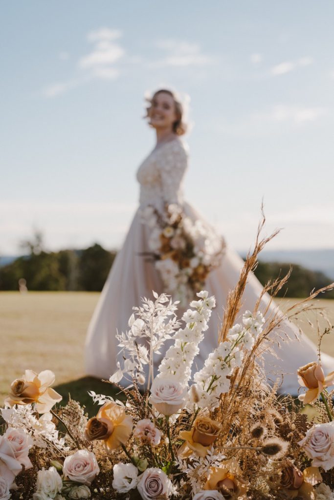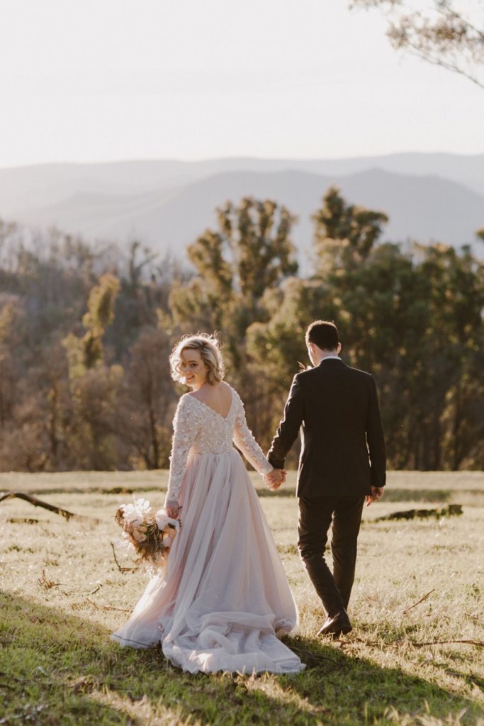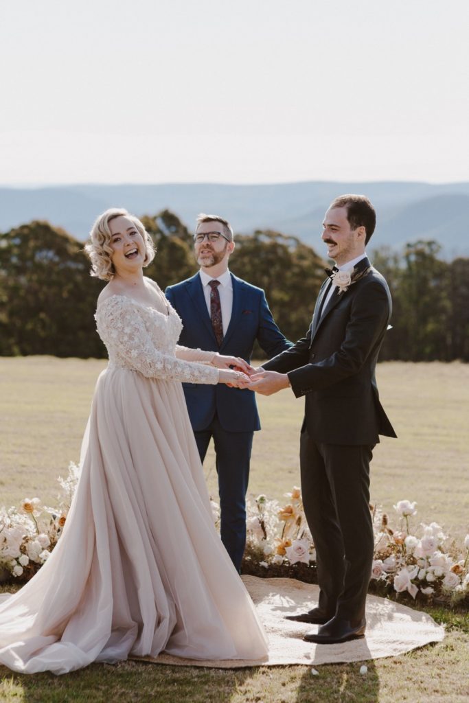 This was a fairy-tale of a wedding day with the most stunning meadow inspired florals on a perfect winter day. Kate & Jacob chose Spicers Peak Lodge for their intimate wedding, inviting just their closest friends and family. It was mid 2021 craziness and their wedding just slipped between two sets of stay at home snap lock downs. Kate was stunning in a tule and lace Luce Sposa gown. The cherry on the cake was their Labradoodle Moe, who’s attendance was a surprise gift from Jacob to Kate as a wedding present.