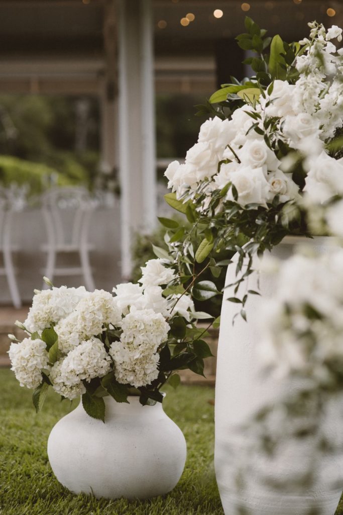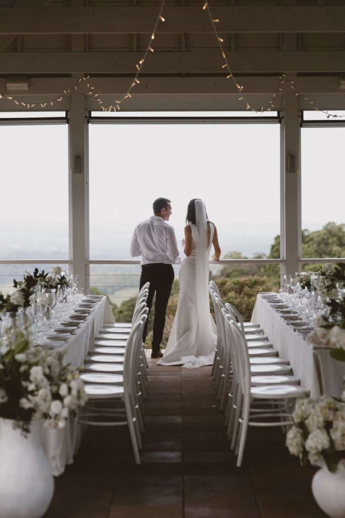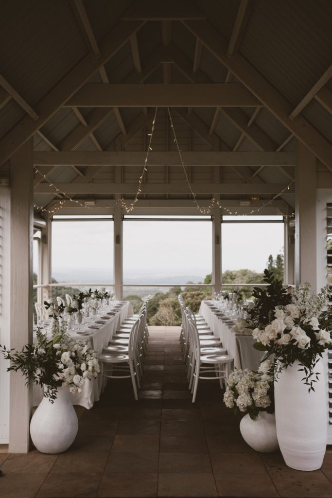 Natalie & Shane’s Maleny Manor wedding was timeless elegance. An abundance of delicate white flowers with a touch of green filled the pavilion for their alfresco reception on a warm late summer evening.