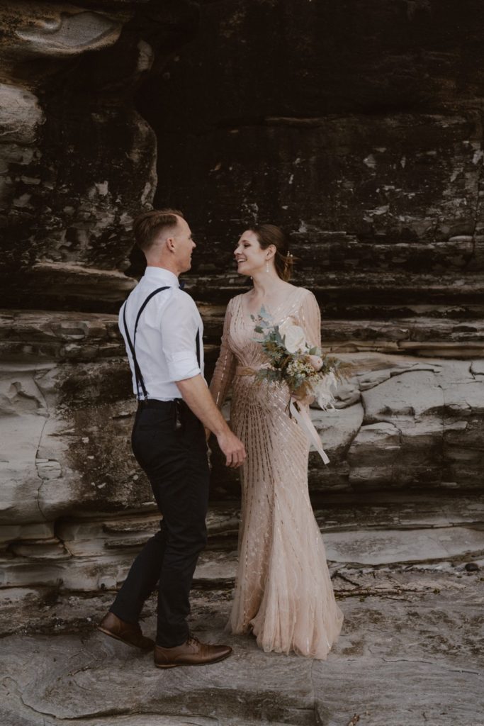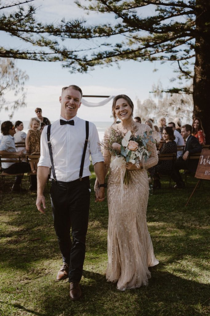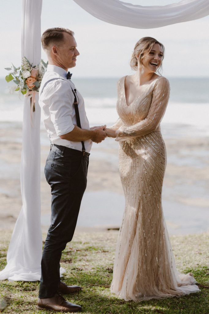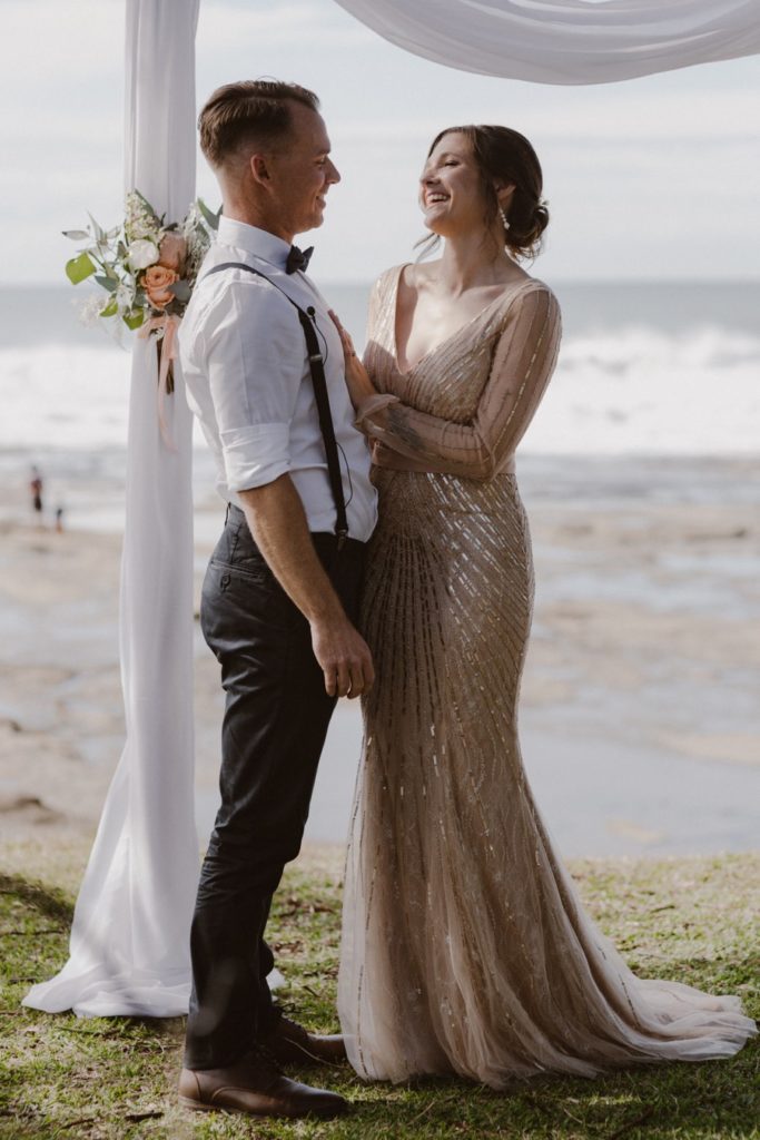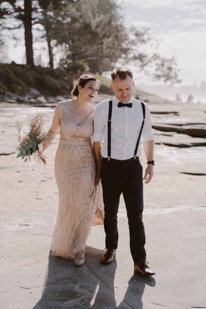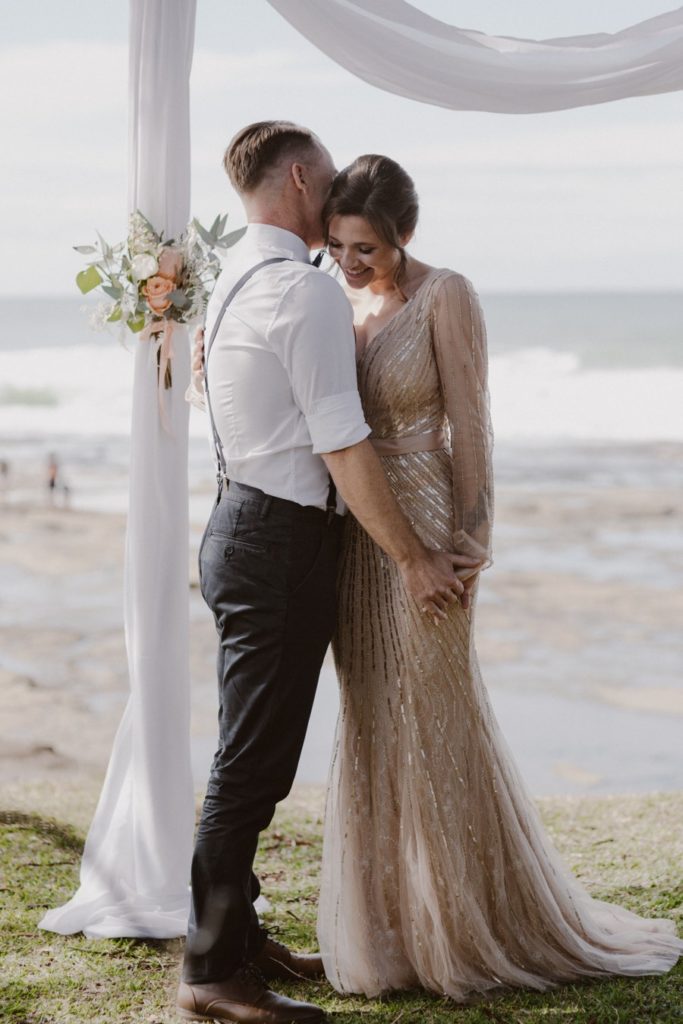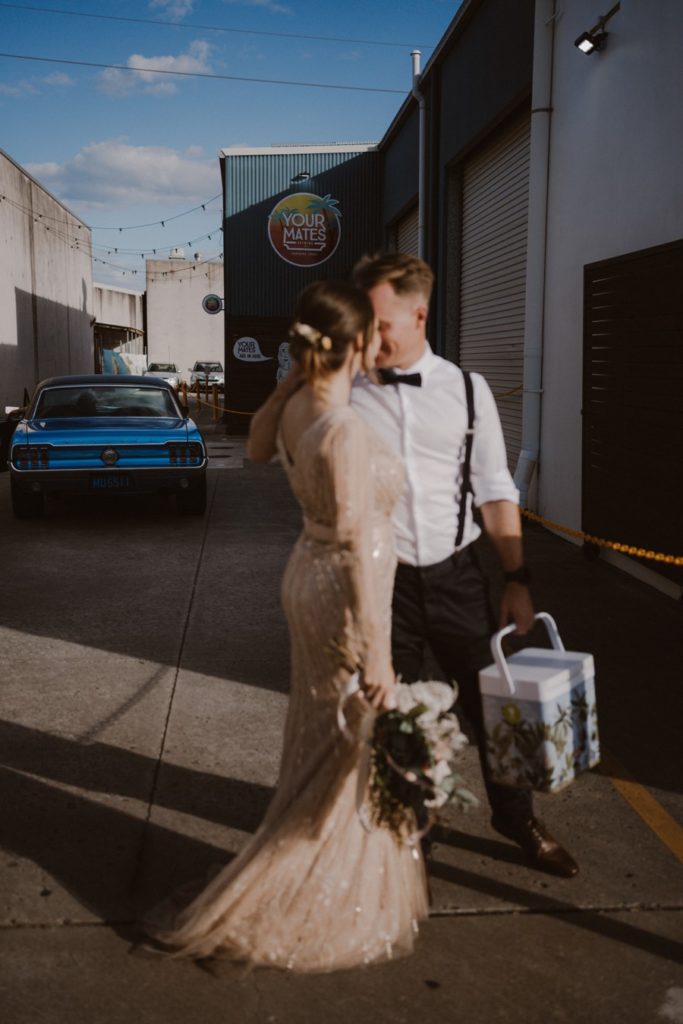 Katie & Adam’s Shelly Beach wedding was on a warm winter day. The vibe was low key and relaxed, with eskies of beer to follow their ceremony. Everyone then joined them for an early afternoon reception at Your Mates Brewing Co, their favourite after work drinks spot.